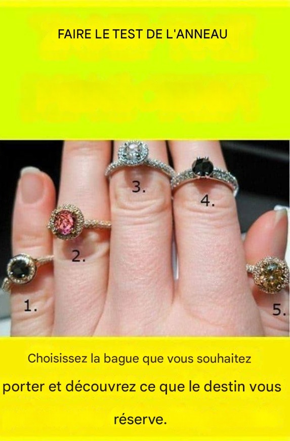 Vous avez sélectionné la bague numéro 1. L’amour te fait te sentir choyé. Quand on est aimé, on sent que l’amour fait ressortir le meilleur de soi et vous rend plus heureux et confiant. Sans amour, on se sent invisible. Pour toi, l’amour signifie l’affirmation. Le véritable amour signifie richesse et sécurité. Quand on aime, on s’engage pleinement ; Il n’y a pas de demi-mesures.
