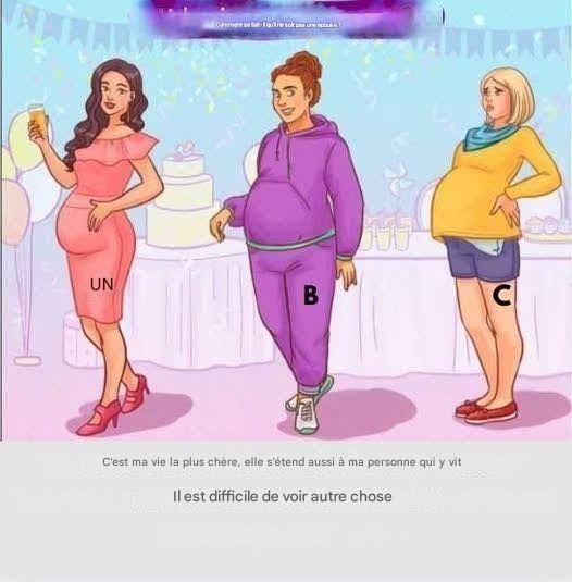 Le casse-tête d’aujourd’hui est simple mais délicat : l’une des trois femmes n’est pas enceinte. Votre tâche consiste à découvrir qui est enceinte en 5 secondes.