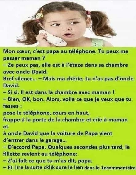 À ce moment-là, la fillette lui a fait une révélation à laquelle il ne s'attendait pas. Elle lui a en effet dit : "Ze peux pas, elle est à l’étaze dans sa chambre avec oncle David".