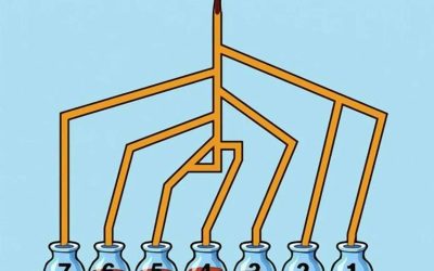 Un robinet, des tuyaux, sept récipients… et une question toute simple en apparence : lequel se remplit en premier ?…