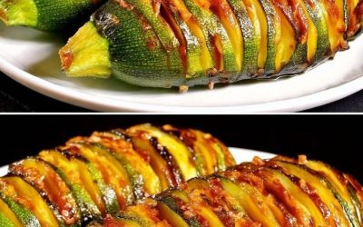 Inspirées de la célèbre technique suédoise Hasselback, ces courgettes sont entaillées en fines tranches sans être coupées entièrement, puis garnies pour devenir fondantes…